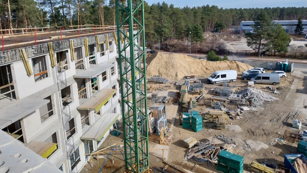 Nasza inwestycja SIM w Kozienicach coraz wyraźniej pokazuje swój finalny wygląd. Bryła budynku jest już gotowa, a na miejscu trwają prace przy montażu okien. Z każdym kolejnym dniem obiekt nabiera ostatecznego charakteru i coraz bardziej przypomina miejsce, które już wkrótce stanie się nowym domem dla przyszłych mieszkańców.